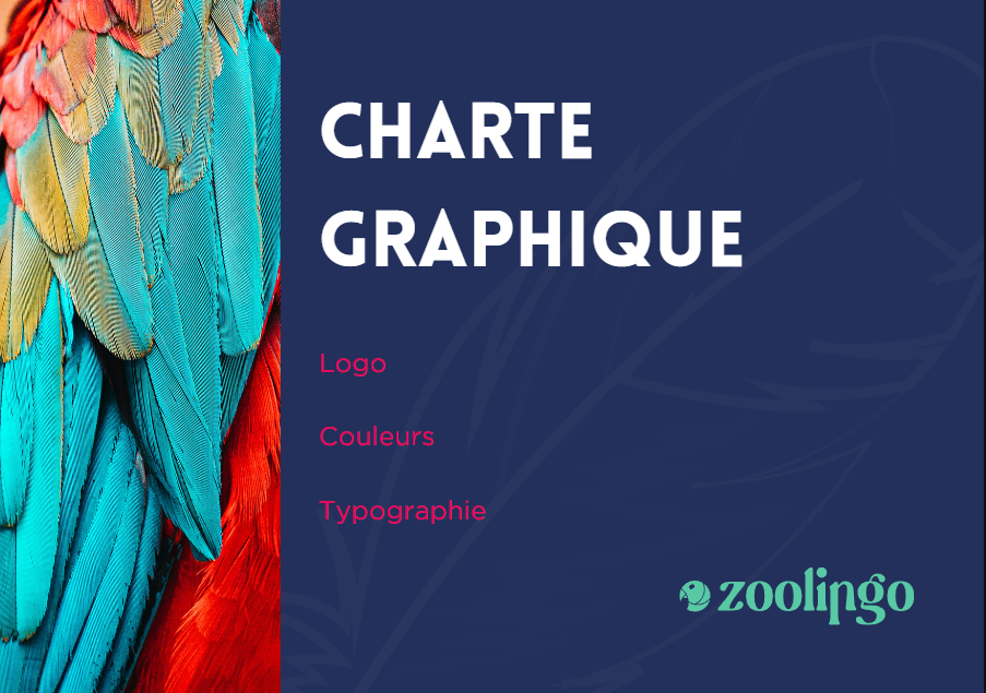 Quant au choix des couleurs, j’ai opté pour un bleu turquoise pour la partie « zoo », évoquant ainsi la référence à l’animal. En revanche, le noir attribué à la partie « lingo » a été délibérément choisi pour maintenir la cohérence avec l’icône du perroquet. Cette décision a été prise dans le souci d’harmoniser visuellement les différents éléments du logo.