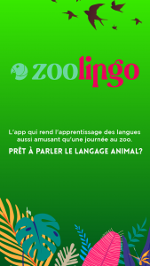 Dans le respect scrupuleux de notre charte graphique, j’ai entrepris la création d’une œuvre graphique visant à promouvoir notre application, choisissant spécifiquement le format d’une story Instagram. Au cœur de cette réalisation, une accroche percutante a été méticuleusement conçue : « L’app qui transforme l’apprentissage des langues en une expérience aussi captivante qu’une journée passée au zoo. PRÊT À PARLER LE LANGAGE ANIMAL ? » Pour renforcer le lien avec notre identité, j’ai intégré des icônes d’oiseaux, notre logo distinctif, ainsi que des feuilles évoquant la luxuriante forêt amazonienne, berceau d’inspiration du perroquet. Une fusion visuelle captivante pour inciter à découvrir le monde fascinant de notre application.